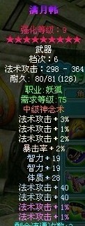 那么 我这件6档加9配神念的武器 的攻击 298+80+76=454点攻击