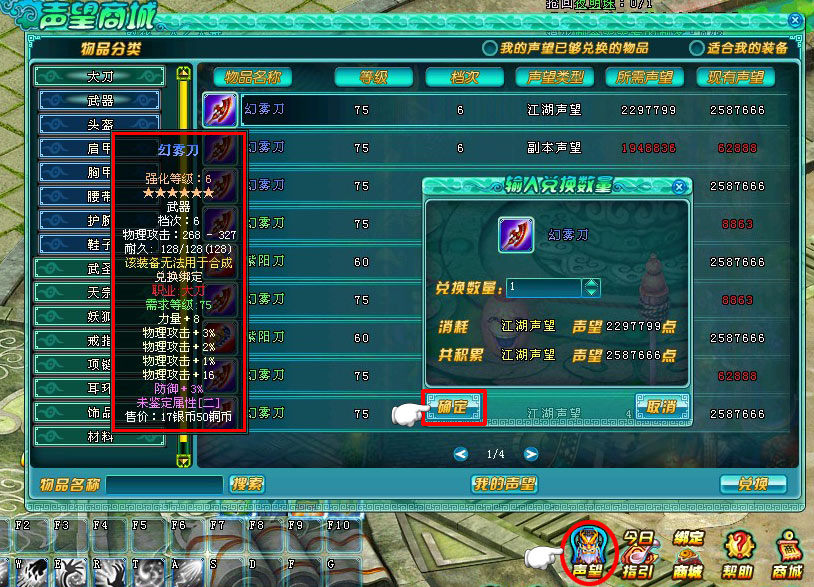 天道酬勤极品可换,“不积跬步,无以至千里;不积小流,无以成江海”,声望系统会记录你在游戏中的点滴奋斗,声望可用来兑换声望商城的好装备,这对于不想砸装备挑战心脏的玩家无疑是个福音, 不同的装备需要不同种类的声望来兑换,这也是在考验玩家的综合实力。在和谐的蓬莱仙界,勤劳务实的修仙者不一定非得烧钱砸装备,只要脚踏实地一步一个脚印,同样也能满载而归。打开角色界面选择声望标签页,可以看到角色当前已累积的声望值,包括副本声望、江湖声望、帮派声望、师徒声望、除妖声望等多项声望值,每一种声望值的获取方式都各不一样。